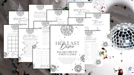 JGA Spielebundle „Her Last Disco“ – monochromes Discokugel Design - 10 Personen