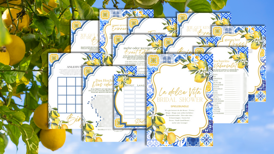 JGA Spielebundle „La Dolce Vita“ – sommerliches Amalfi-Zitronen-Design - 10 Personen